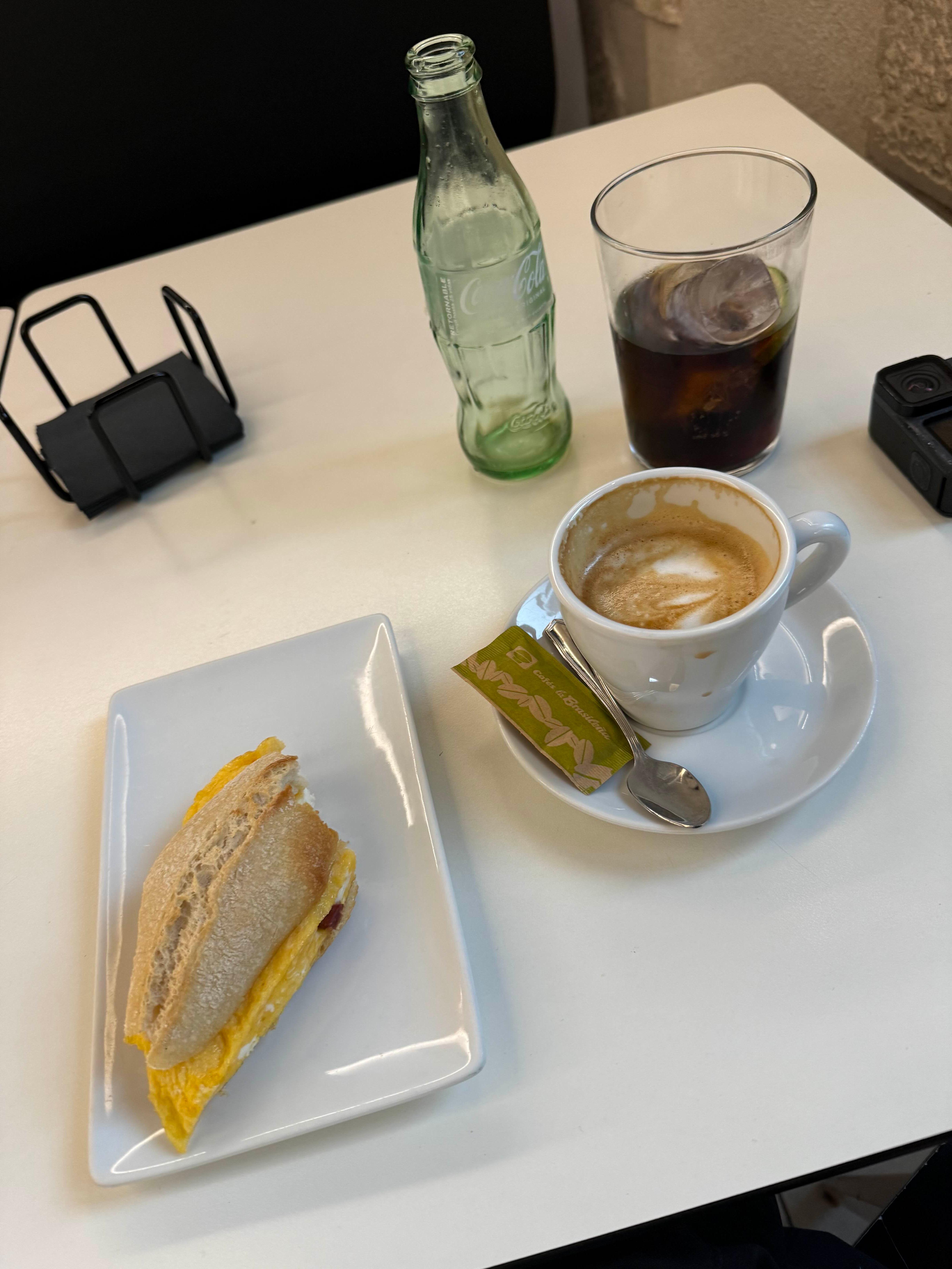 그렇게 나는 오픈한 바를 발견하고 들어가 샌드위치와 카페 콘 레체, 콜라를 시켜먹었다. 걸어오는 내내 소나기가 쏟아져서 우산을 쓰고 걷느라 2배는 더 힘들었던거 같다.