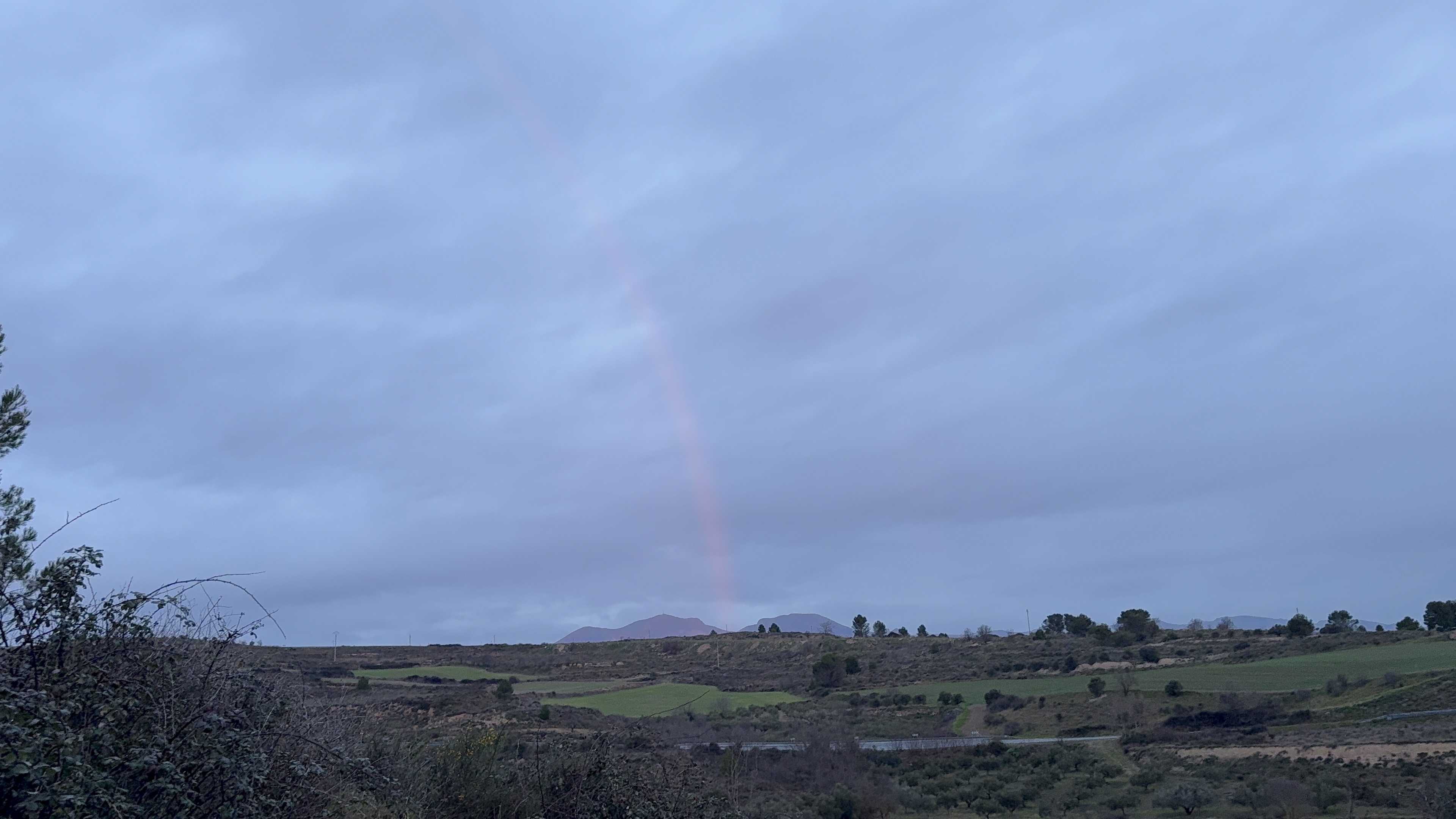 그렇게 붉은 하늘을 감상하다 반대로 고개를 돌리니 어여쁜 무지개가 떠 있었다. 평생 몇번 보지도 못한 무지개를 이곳에선 며칠에 걸쳐 볼 수 있다니.. 우기 까미노도 역시나 아름답다.
