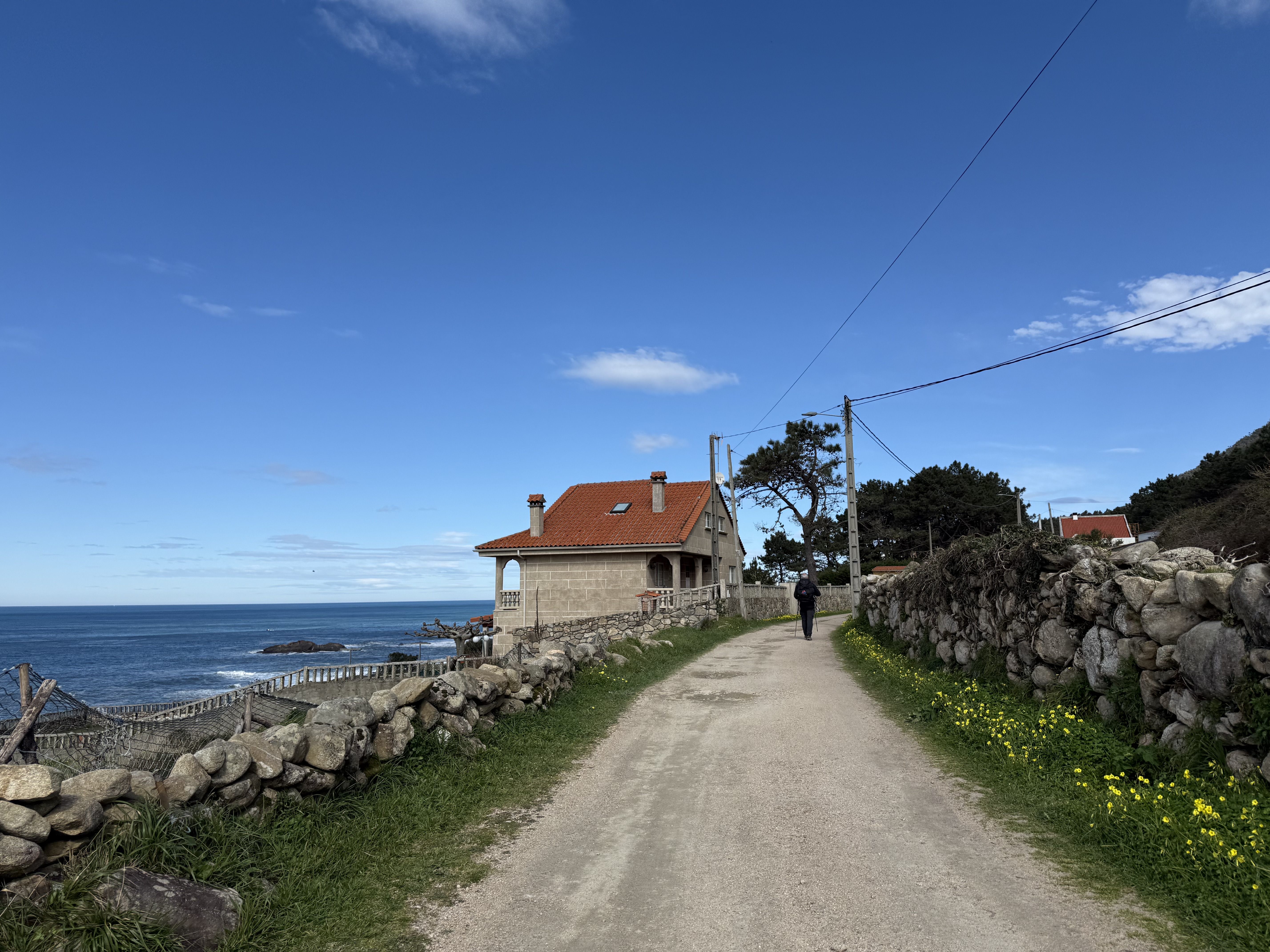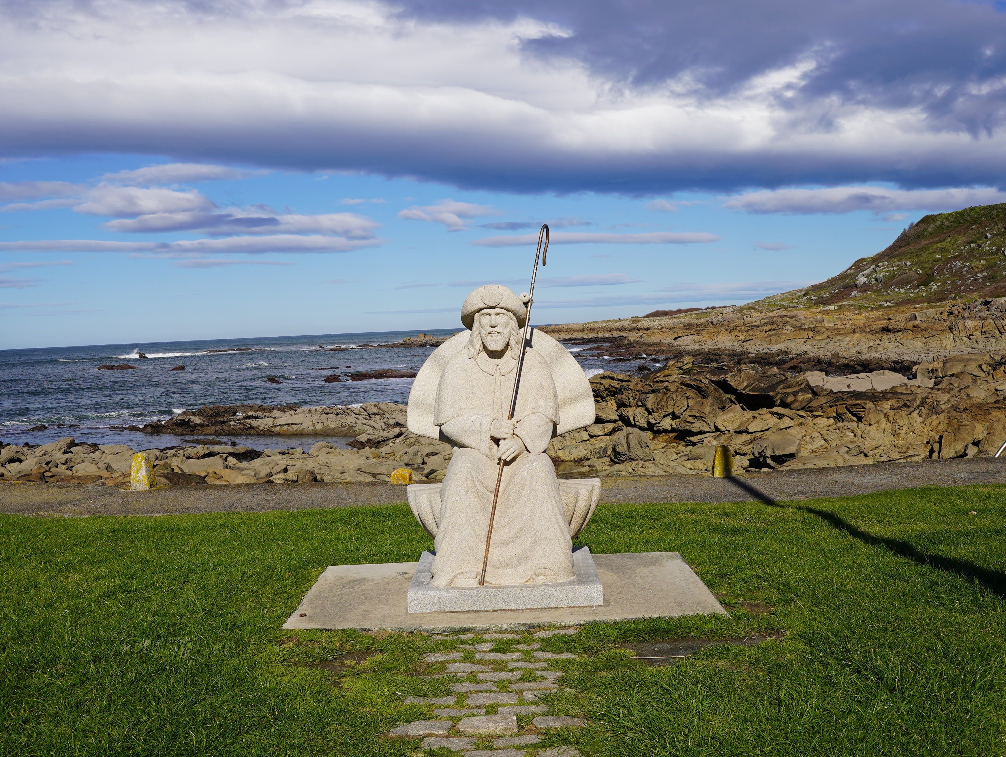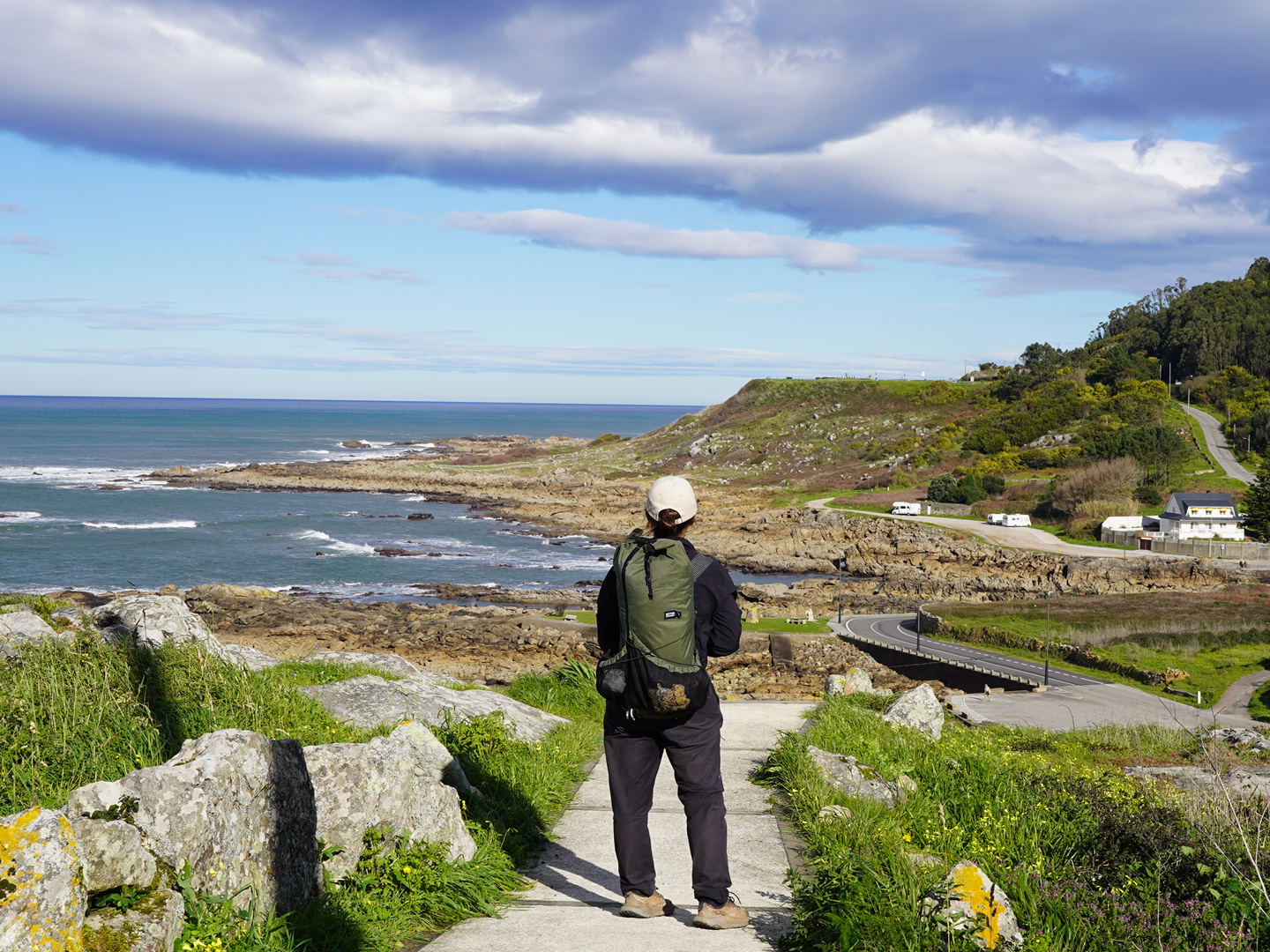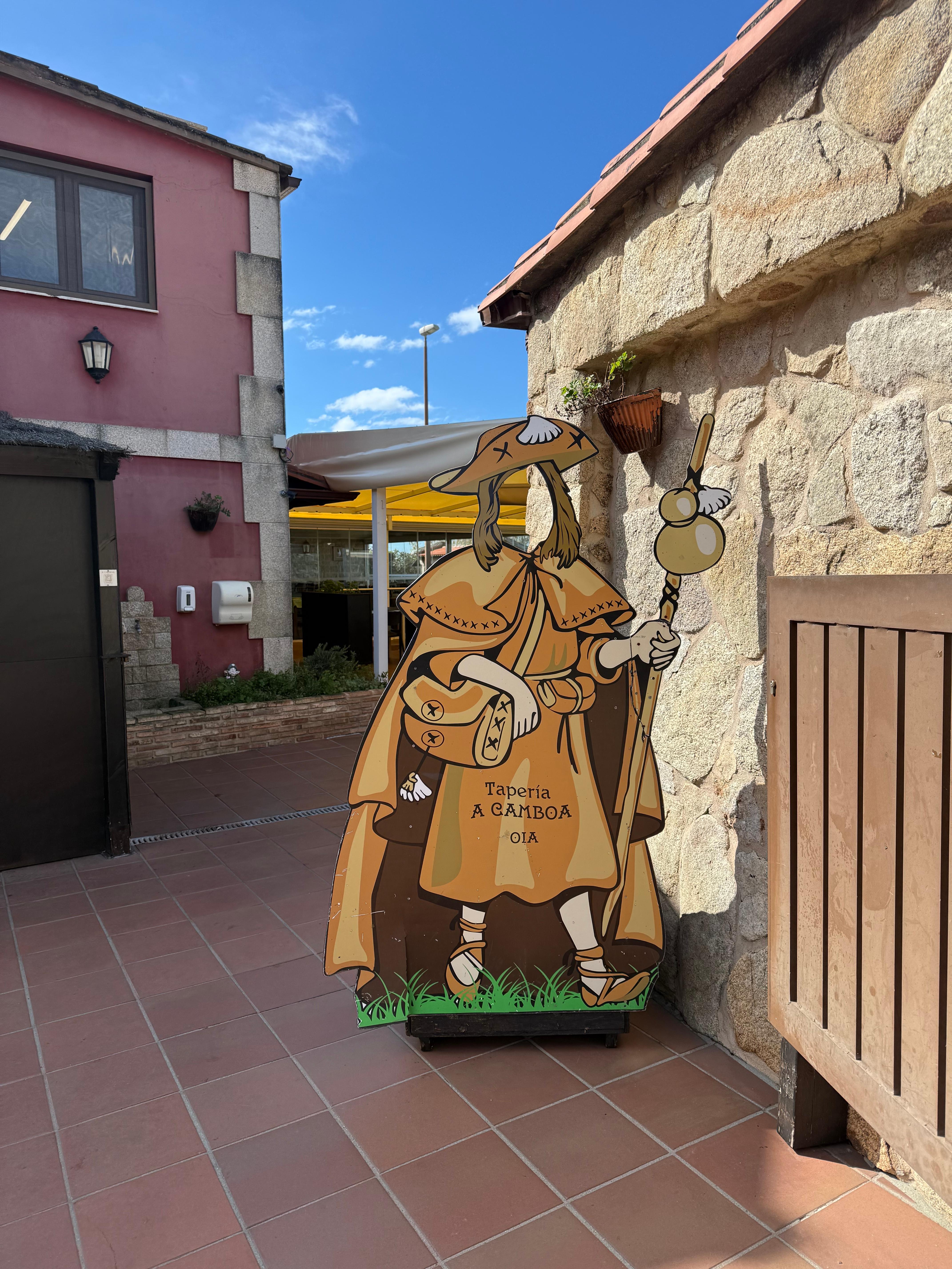 그렇게 마을을 지나 해안가로 내려가니 스페인 순례자 동상이 또 우리를 반겼다. 포르투갈의 귀염 넘치는 순례자 할아버지와는 다른 위엄있는 할아버지 순례자 석상.. 뭔가 가슴이 뜨거워졌다. 이곳에서 정말 멋진 순례자 아주머니..? 할머니라기에는 멋진 언니 느낌의 할머니가 스틱을 열심히 짚으며 걸어가는데, 나도 나이들면 저렇게 멋진 할머니가 되고싶다고 생각했다. 은발 숏컷의 백팩을 메고 파워워킹으로 열심히 걷고 계셨다.