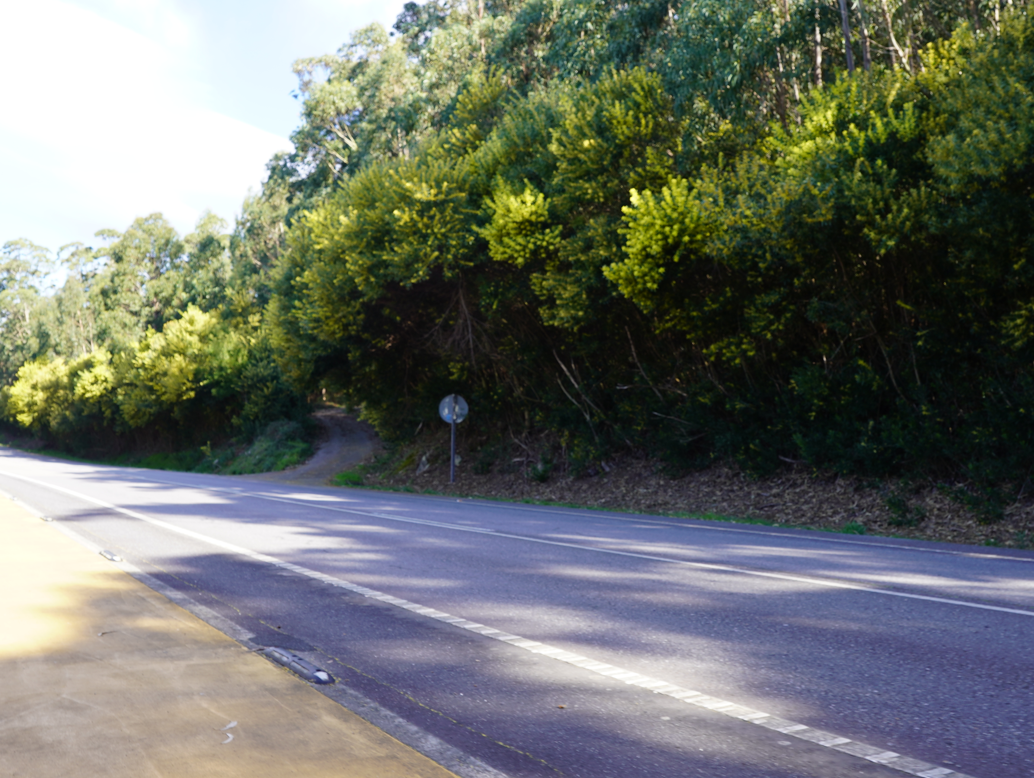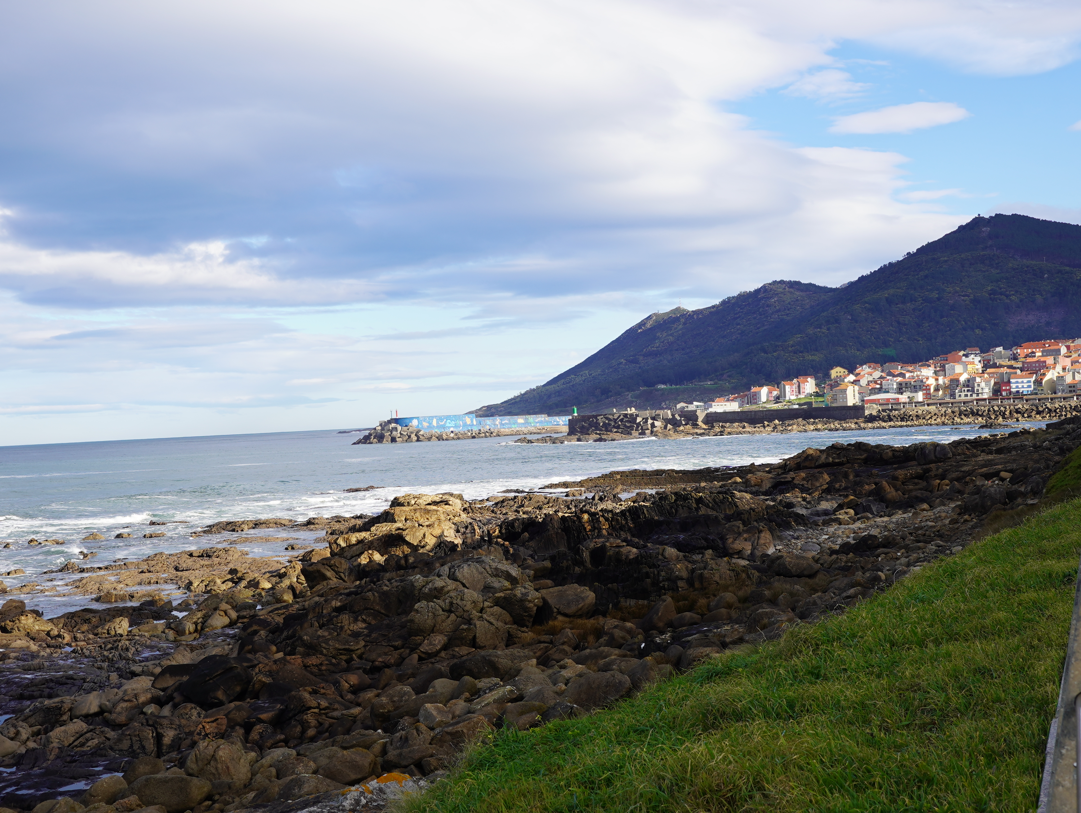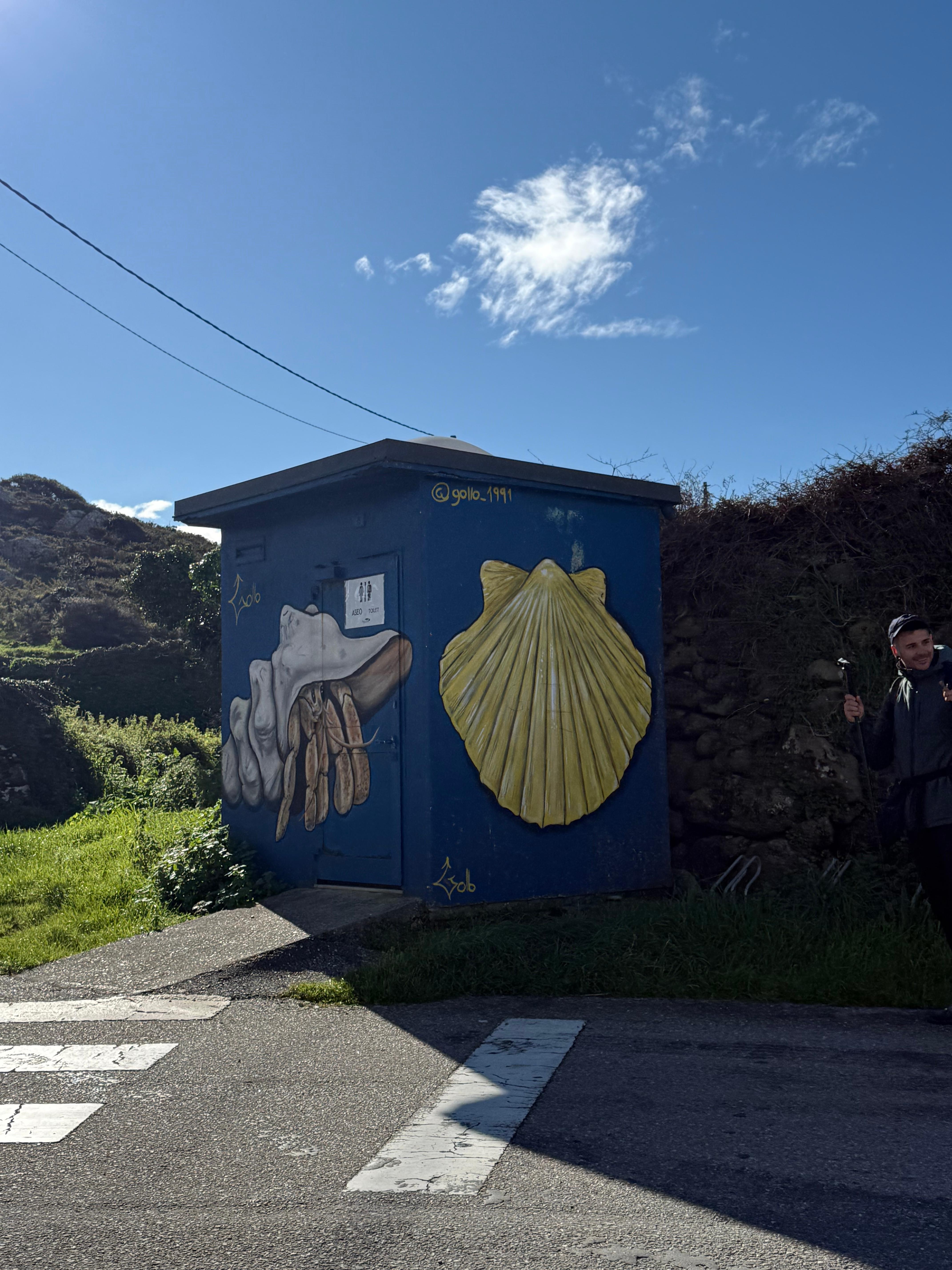 뒤돌아보니 우뚝솟은 산과 그 아래의 자리잡은 마을이 한없이 아름답기 그지 없었다. 가는길에 가리비 벽화가 있었는데 한 커플이 열심히 그곳에서 서로를 찍어주는 모습이 정말 예뻐보였다. 그렇게 해안가를 따라 조성된 길을 몇분 걷지도 않고는 갑자기 위로 향하더니 숲길에 접어들었다. 엥.. 해안가 길 이게 끝이여..?? 처음에 인위적으로 조성된 포르투갈의 데크길보다 자연적으로 형성된 스페인 해안가길이 좋다고 생각했는데.. 다시 말을 바꿔야겠다. 결론적으로 말하면 스페인 해안가길은 그냥 해안가 옆에 있는 자전거도로, 마을길, 숲길을 이어놓은거 이상도 이하도 아니였다. 포르투갈길은 뭔가 아기자기하고 바다를 직접적으로 옆에 두고 걷는 맛이 있었는데 스페인길은 글쎄...