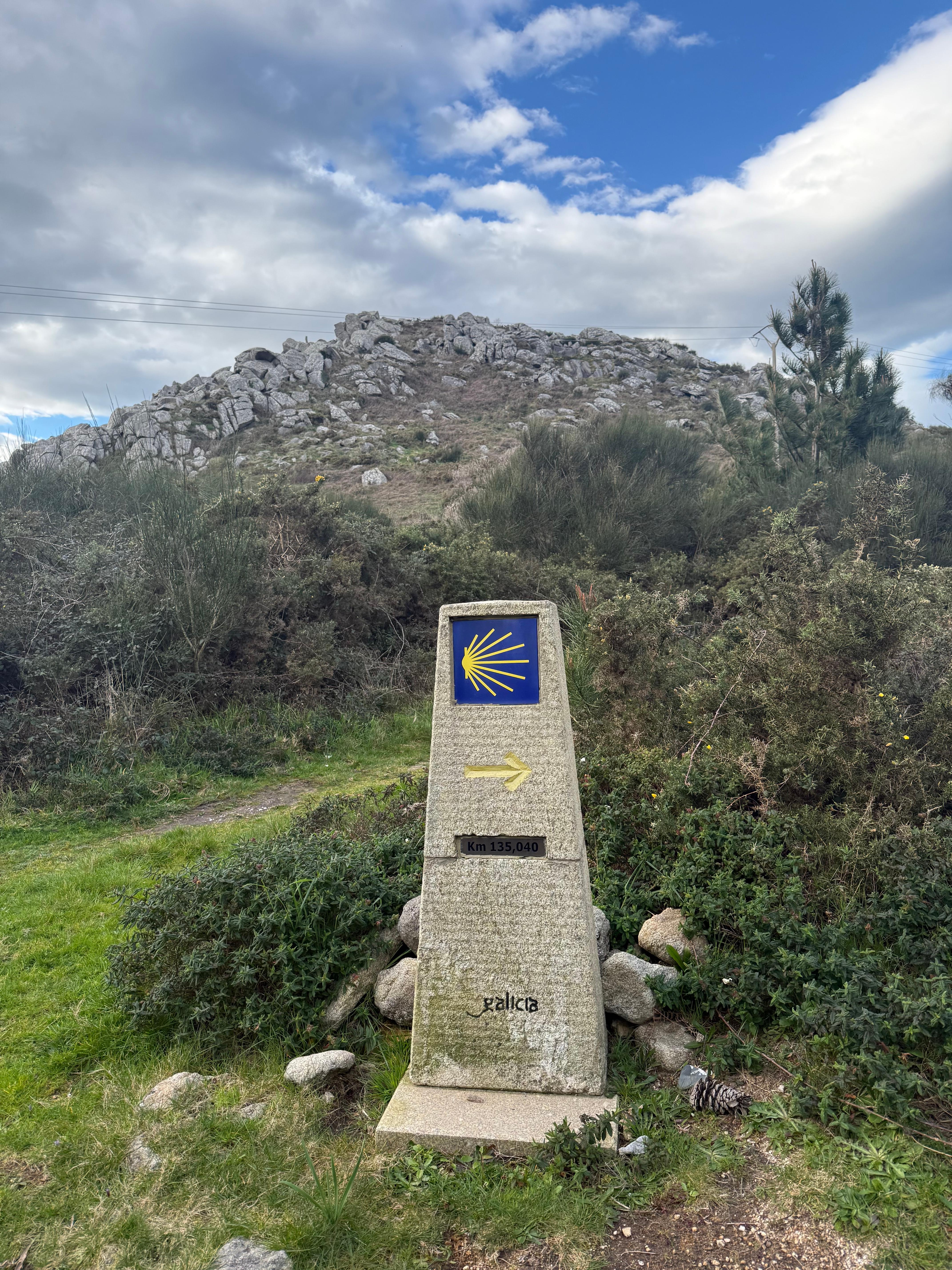 스페인에 들어서고부터는 다시 산티아고까지 남은 거리가 표시된 갈리시아 순례길 인증석이 길을 안내했다. 처음 만난 인증석은 150km 였는데, 다시보니 왠지 가슴이 설레고 이제는 해안길이 아닌 진짜 순례길에 접어든것 같았다.