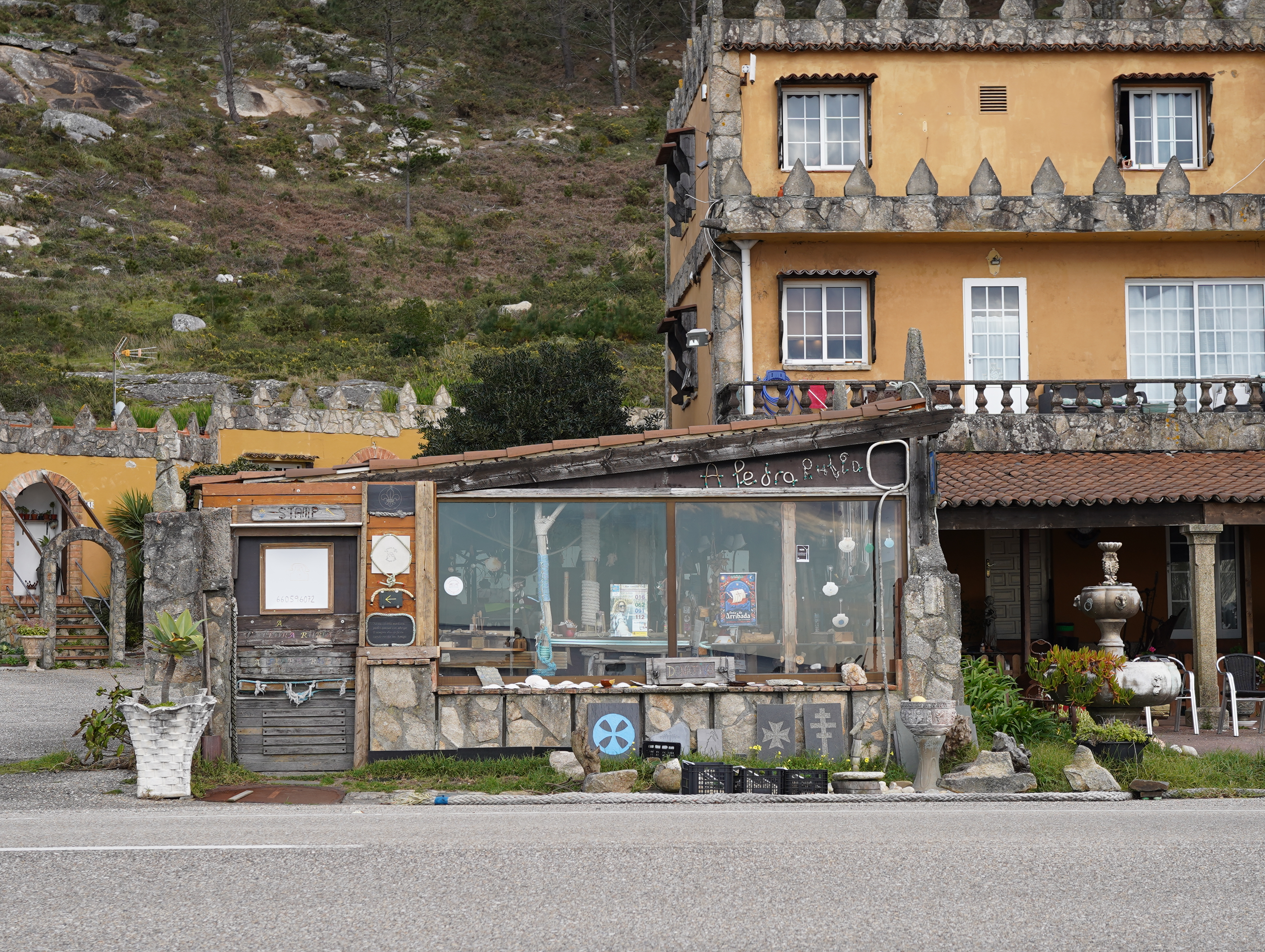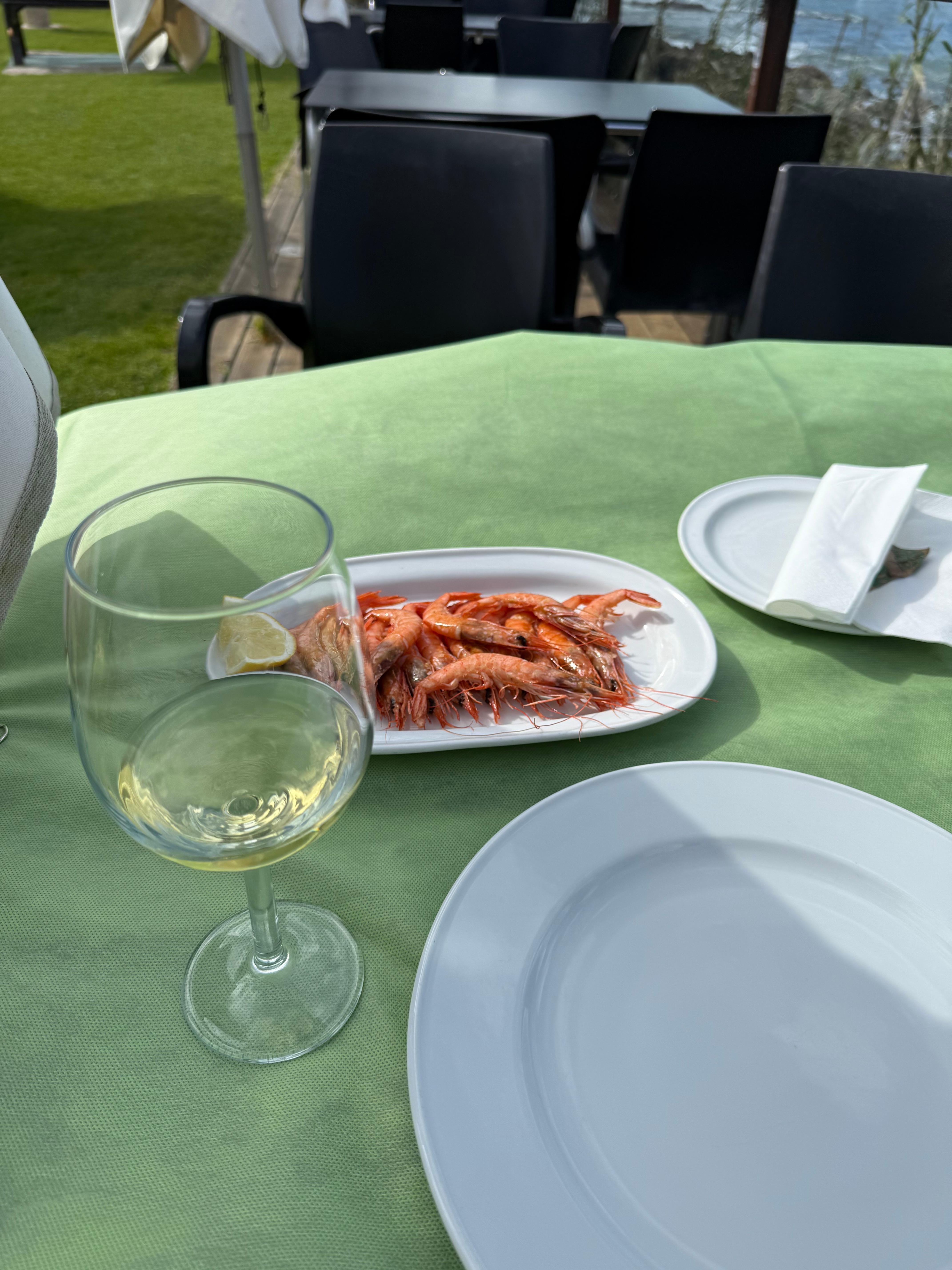 그렇게 숲길, 해안가길, 도로길을 순차적으로 걷다보니 중간에 수도원으로 유명한 Oia 라는 마을에 도착했는데 멀리서도 아 저게 그 유명한 수도원이구나를 알겠더라. 마침 1시가 다 되어서 점심을 먹을까 싶었는데 수도원 맞은편에 식당이 있어 들어갔다가 진짜 순례길 40일만에 인종차별 당하고 기분이 더러워서... 새우랑 화이트와인 시켰는데 구글 리뷰의 새우와 너무 달라 하나로 안되겠다 싶어 가리비나 홍합을 더 시키려고 했는데 아무리 불러도 직원이 안오는거다. 심지어 그 멋진 할머니가 내 뒤에 테이블에 있었는데 고작 샐러드 하나 시킨 그 아줌마한테는 맛있게 먹었느냐 커피 먹을래 등 온갖 얘기를 다하면서 정말 짜증나서 바로 일어나 19.50유로를 결제하고 나왔다. 너무 화가나서 진짜 잘 안쓰는 구글리뷰까지 쓰고... 암튼 기분 잡쳐서 나와 수도원 구경도 안하고 그냥 무작정 걸었다.