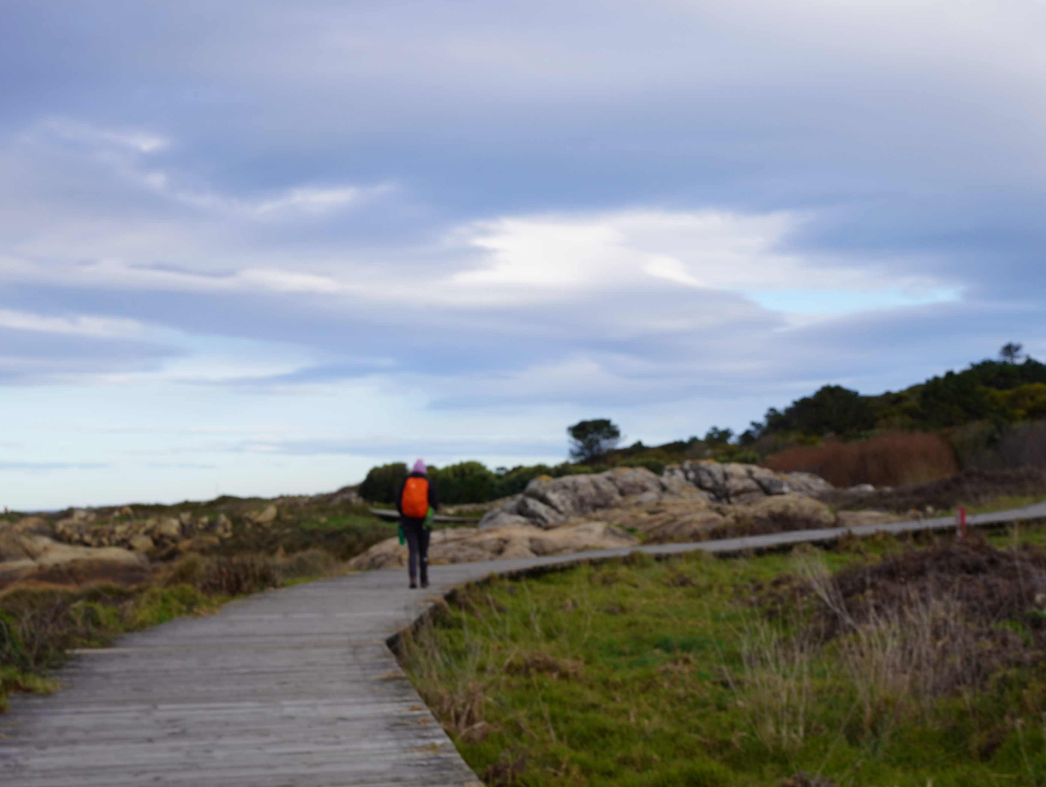 오늘은 일정상 Baiona 까지 32km를 넘게 가야하는데.. 느그적느그적 여유롭게 걸어오는 친구들이 답답했고 순례길에서 멀리 내린 덕에 우리는 해안가를 따라 조금더 둘러가는 코스를 걸어갔다. 다행히 데크가 잘 깔려 있어서 훨씬 걷기 좋았고 조망도 원래 순례길보다 좋았으리라 생각된다. 아침에 비가 내린 탓인지 생각보다 많이 추웠고 북쪽으로 올라가서 그런건지 아니면 오늘 날씨가 유독 추운건지 모르겠지만 아무튼 오랜만에 패딩 조끼와 바람막이를 겹쳐 있었다.